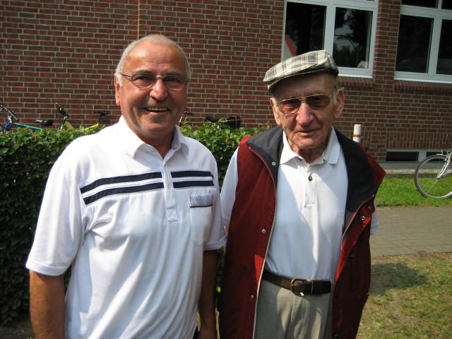 Alfons Höber und Hugo Wolke, der Ausnahmespieler des SuS BOKE Ende der 1940er und Anfang der 1950er Jahre, während des Sportfestes im Jahr 2007.