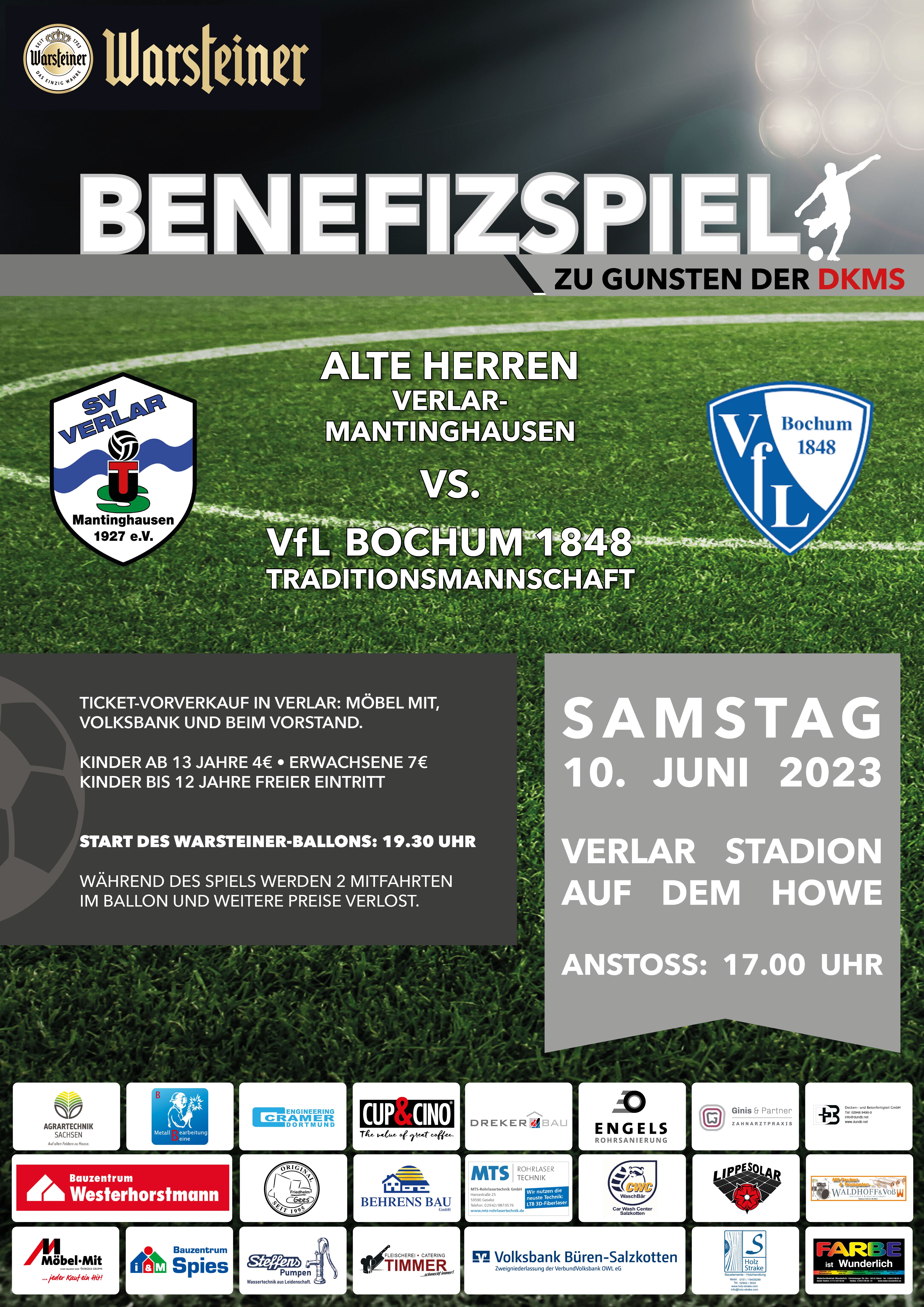 Am Samstag, den 10. Juni 2023, um 17:00 Uhr, findet in Verlar ein Benefizspiel zugunsten der DKMS statt.