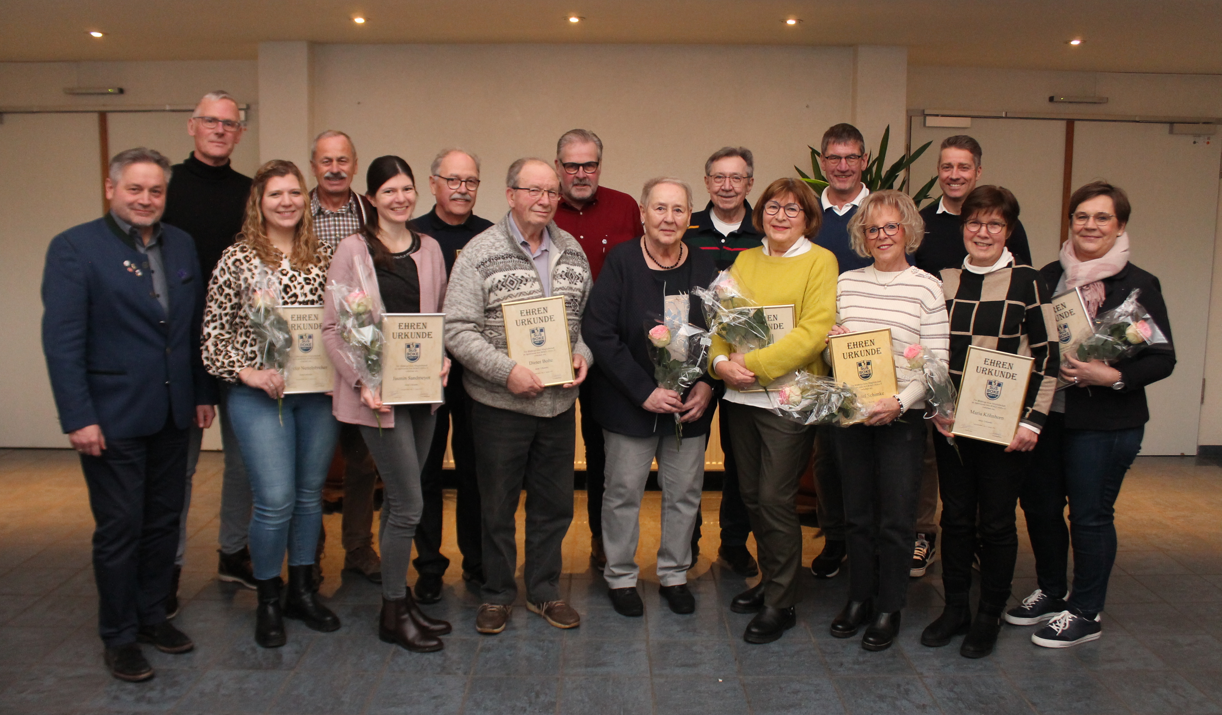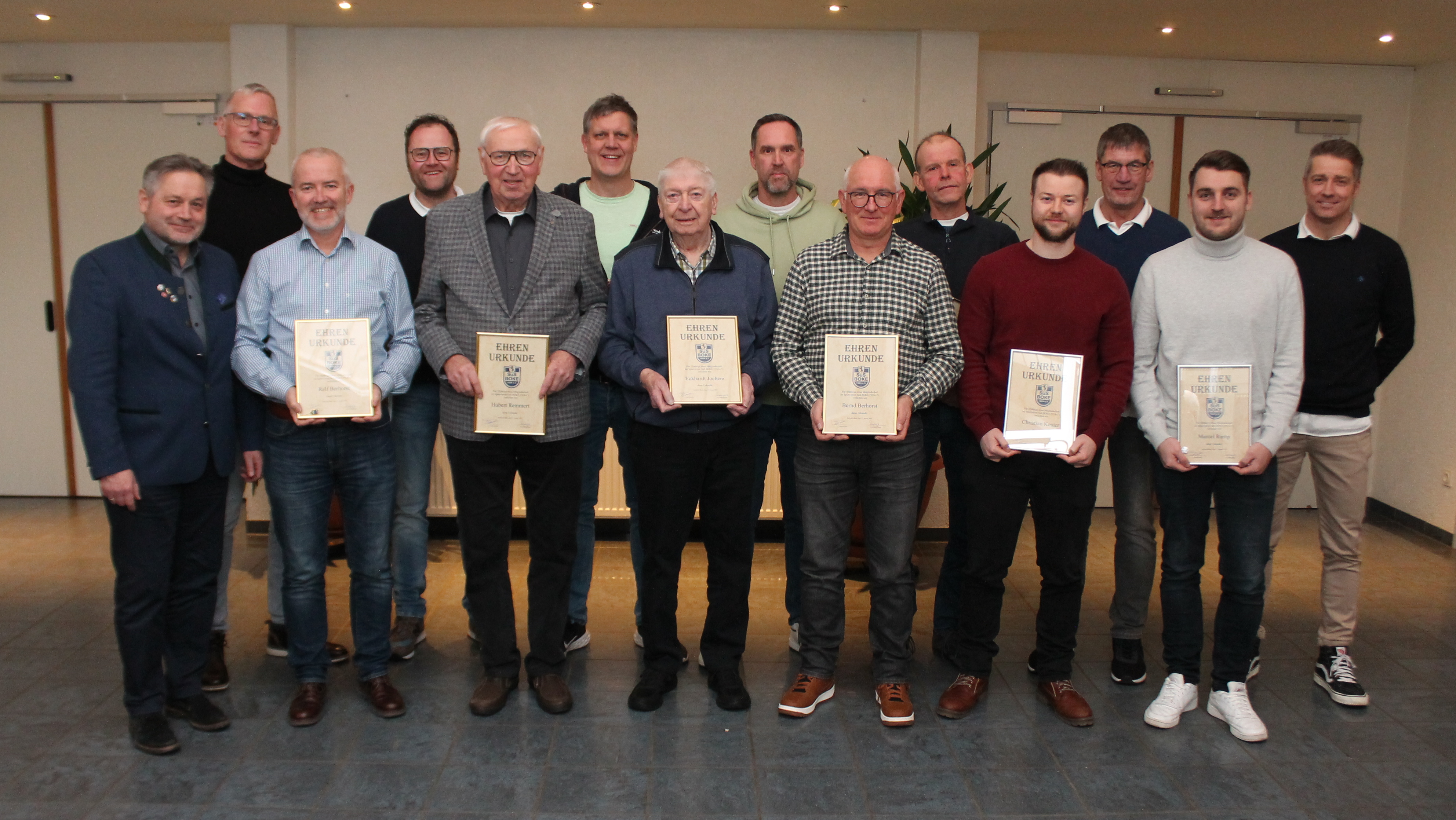 Den Fußballern des SuS BOKE gehören Andreas Keuter, Bernd Berhorst und Ralf Berhorst seit 50 Jahren und Roland Jürgensmeier seit 40 Jahren an. Auf 25 Jahre Vereinszugehörigkeit blicken Andreas Schniedermeier, Christian Keuter, Dirk Ottensmeier, Heiko Jungmann, Joris Göstenkors, Heinz-Jürgen Rüenbrink, Lukas Schröder, Manfred Dunschen, Marcel Rump, Shane Axe, Thomas Wilmes und Tristan Schmidt.