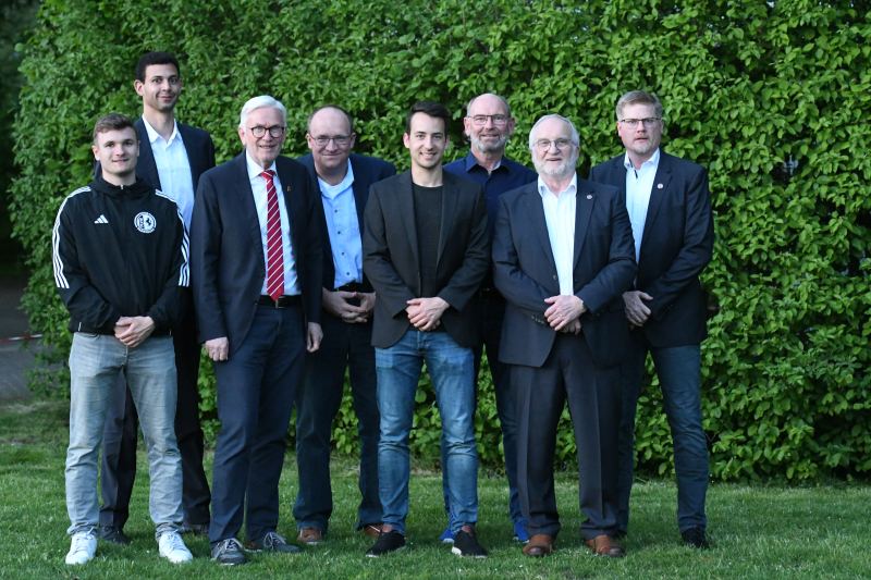 Der neu gewählte Kreisvorstand (v. l.) mit Linus Fuchs (Obmann für Vereins- und Kreisentwicklung, SV Heide Paderborn), Manuel Lappe (Kreiskassierer, SC GW Espeln), Hans-Josef Huschen (Vorsitzender Kreisschiedsrichterausschuss, USC Altenautal), Christian Kroker (Vorsitzender Kreisjugendausschuss, DJK Mastbruch), Magnus Thiele (Vorsitzender Kreisleichtathletikausschuss, VfB Salzkotten), Bernhard Winkel (Kreisehrenamtsbeauftragter, SV RW Bentfeld), Dietmar Ape (Kreisvorsitzender, VfL Thüle), Gero Wittkemper (Vorsitzender Kreisfußballausschuss, SC Ostenland). Foto: FLVW Paderborn.
