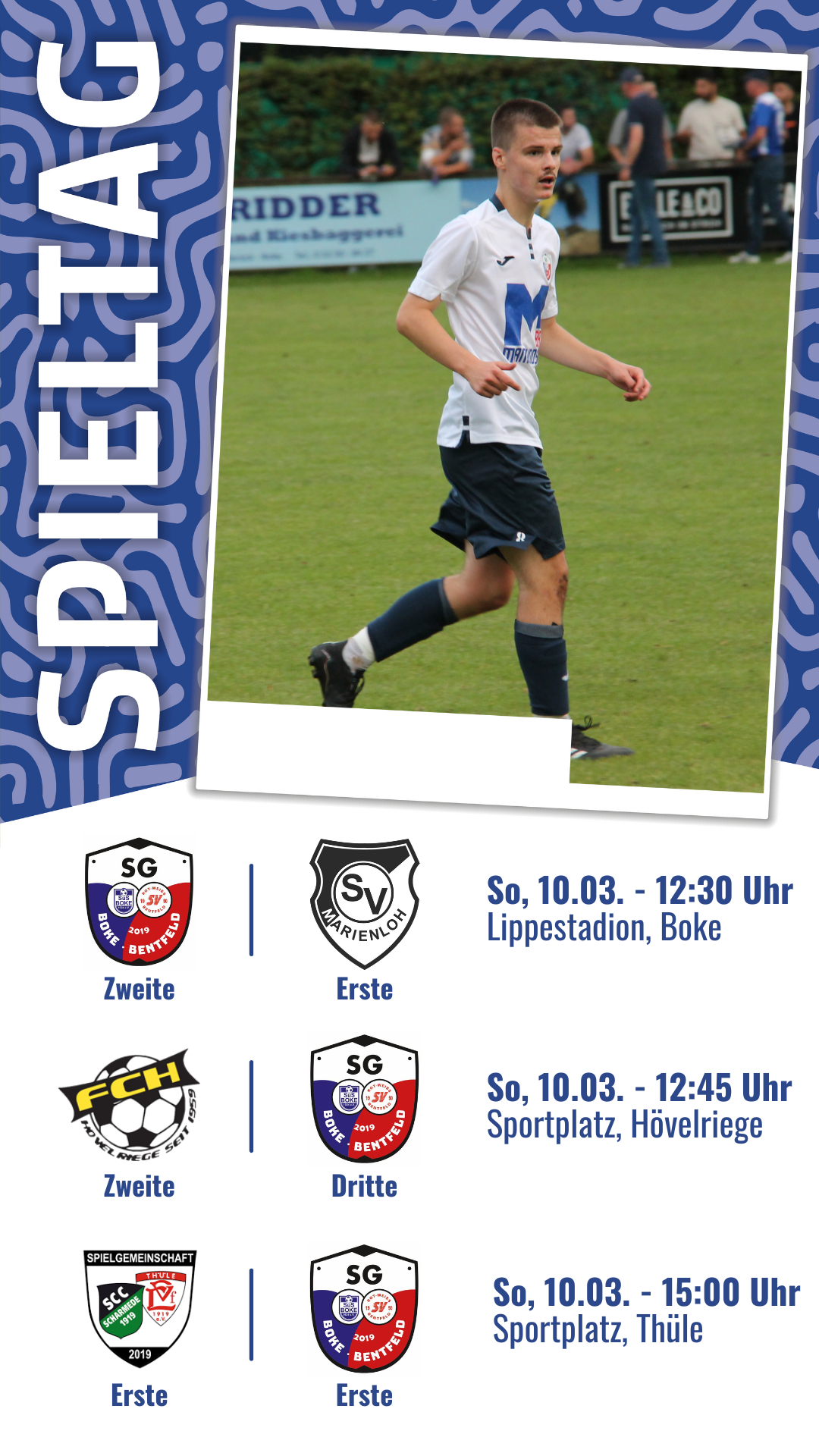 Den Spieltag eröffnet unsere Reserve um 12:30 Uhr im Lippestadion gegen den Tabellensechsten und Vorjahres-Vizemeister SV Marienloh. Im Hinspiel musste unsere Mannschaft am 10. September 2023 eine klare 2:7-Niederlage einstecken.