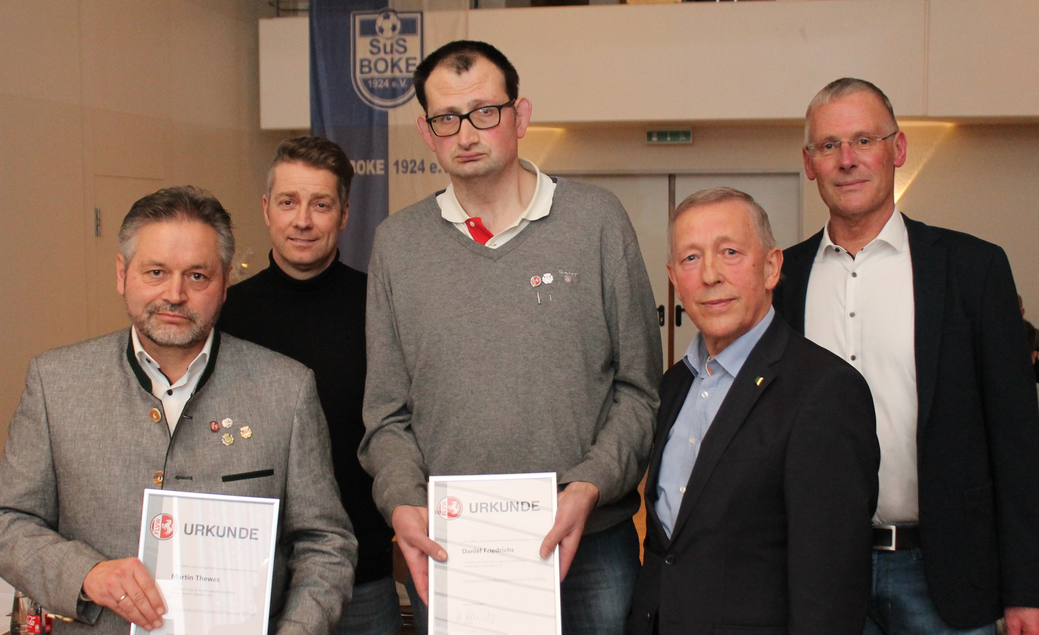 Im Laufe der Jahreshauptversammlung des SuS BOKE 1924 e.V. hielt der Fußball- und Leichtathletikverband Kreis Paderborn für zwei Mitglieder des Spiel- und Sportvereins eine Überraschung bereit.