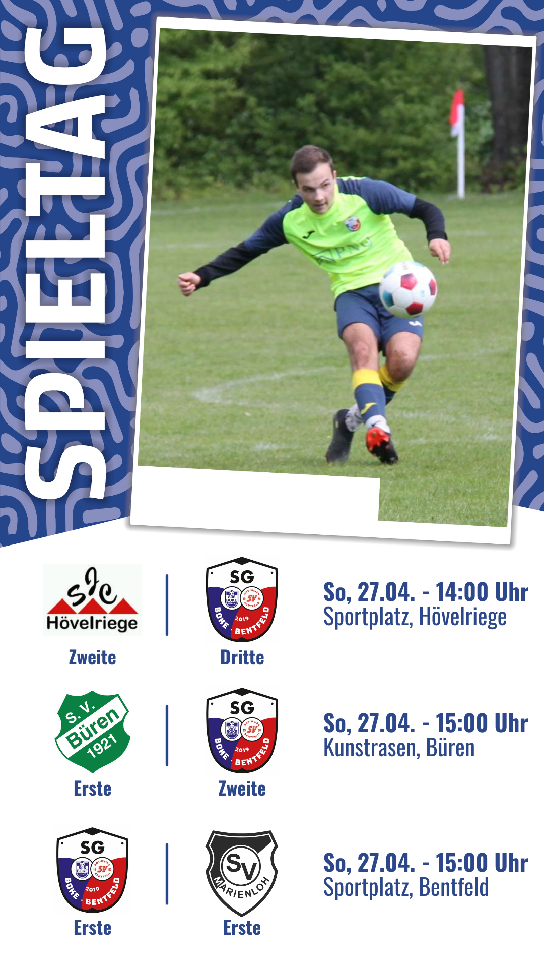 Nach dem Spitzenspiel vom Donnerstag, steht unsere I. Mannschaft gegen den SV Marienloh vor der nächsten schweren Aufgabe. Der Vizemeister des Vorjahres steht zwar lediglich auf Platz 8, ist aber in keinster Weise zu unterschätzen. Das Hinspiel endete 1:1-Unentschieden. Anstoß auf der Sportanlage am Mühlenweg in Bentfeld ist um 15:00 Uhr.