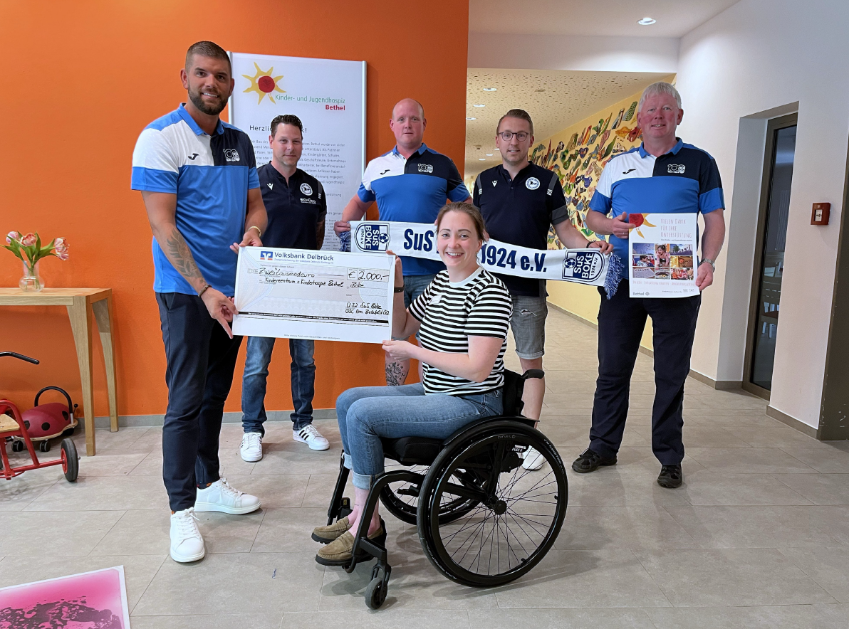 Den Ansprechpartnern/innen im Kinder- und Jugendhospiz Bethel konnten bei zwei Treffen symbolische Schecks über den Gesamtbetrag i. H. v. 5.700 € überreicht werden. Darüber hinaus lernten die Vertreter des SuS BOKE 1924 e.V. die Einrichtung im Bielefelder Ortsteil Bethel kennen.