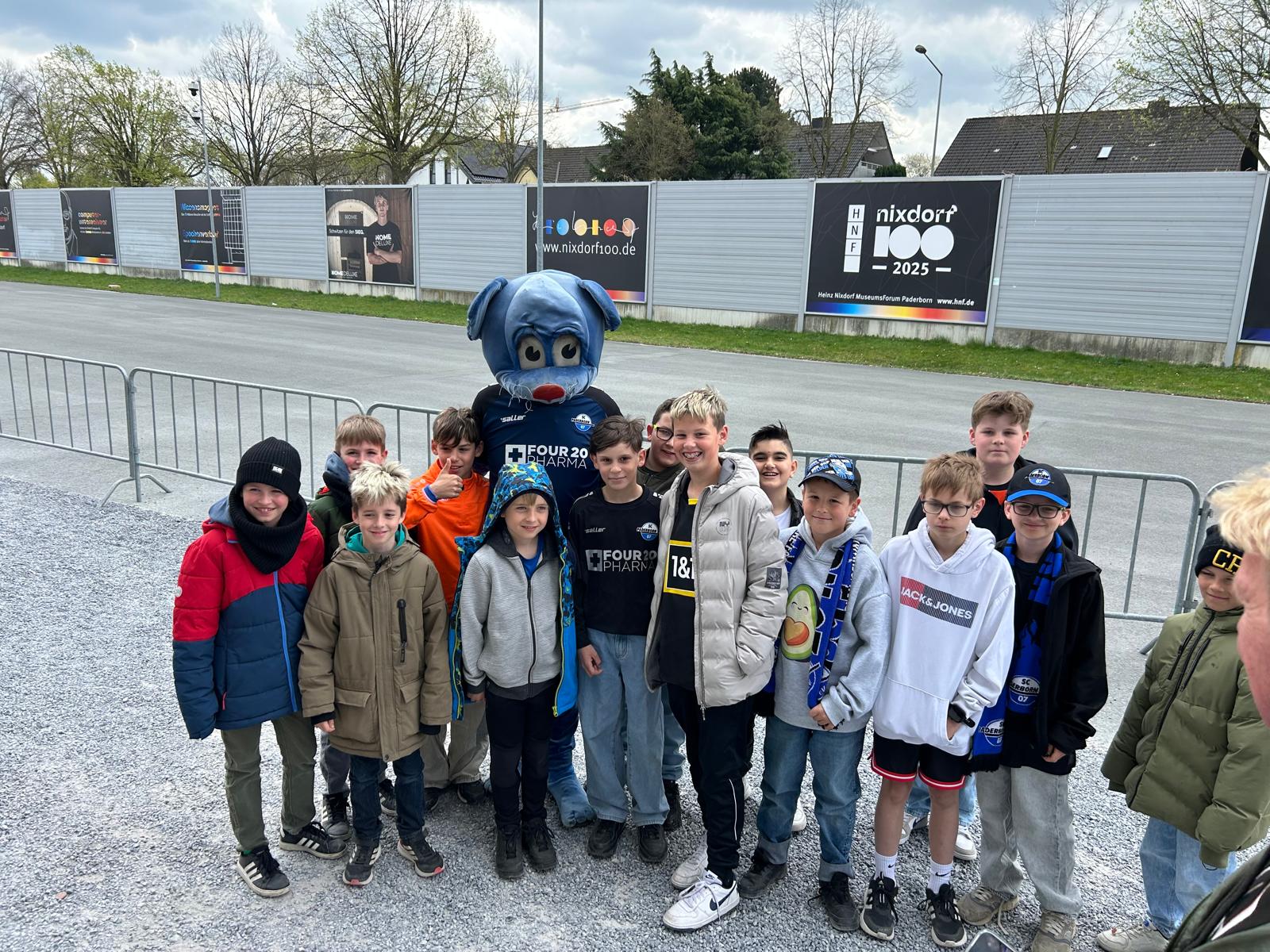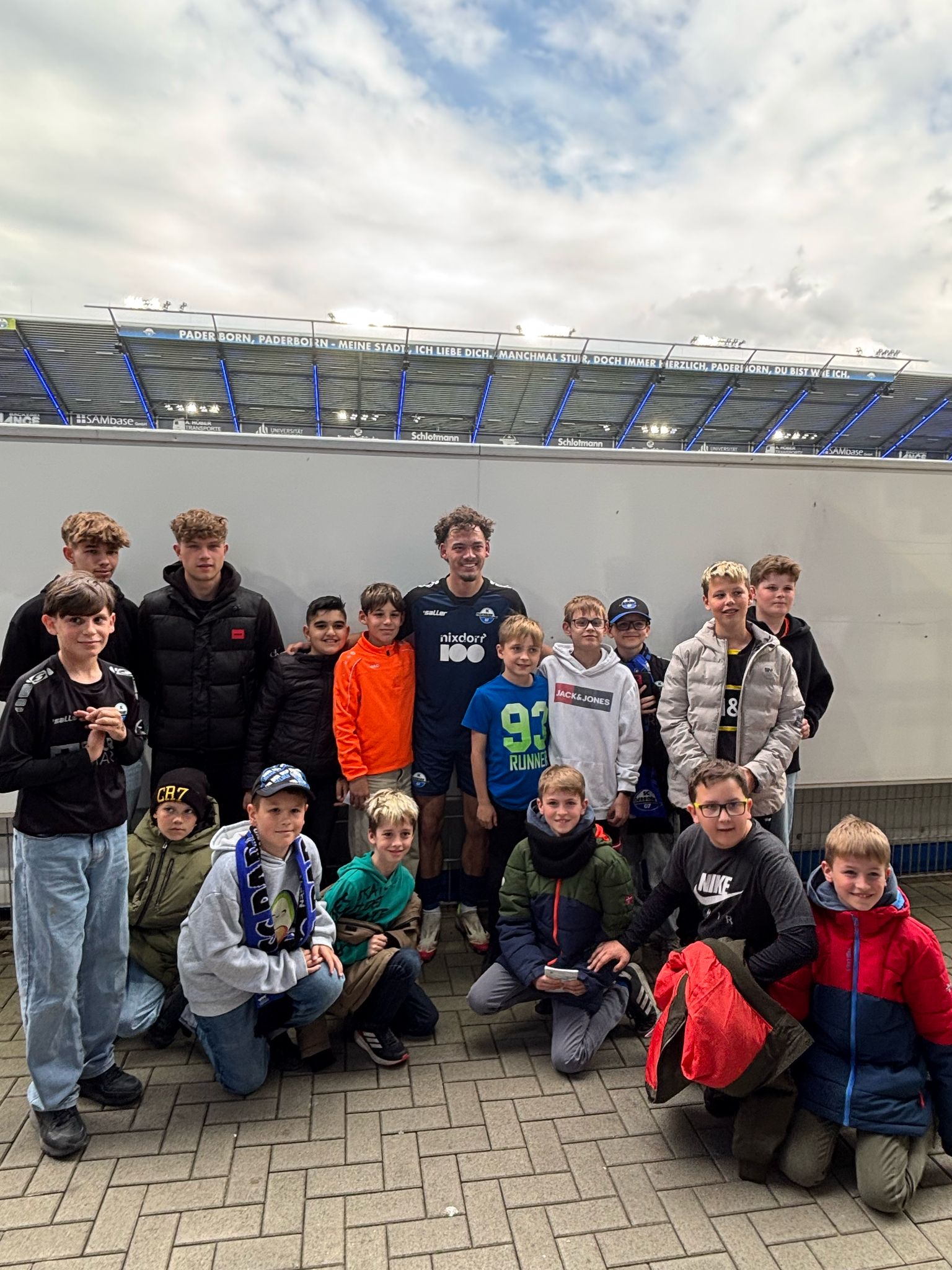 Für einige der SuS-Kicker war es der erste Besuch in der Home Deluxe Arena. Mit dem Treffen am Fanpoint, einem Foto mit Maskotchen Holly, dem begeisterten Anfeuern des SCP über die neunzig spannenden Spielminuten sowie anschließendem Spieler- und Fankontakt, konnten viele unvergessliche Momente geschaffen werden. Highlight war nach dem Spiel ein Foto mit Aaron Zenther, der in dem Zweitliga-Topspiel wieder einmal einer der auffälligsten Paderborner Spieler war.
