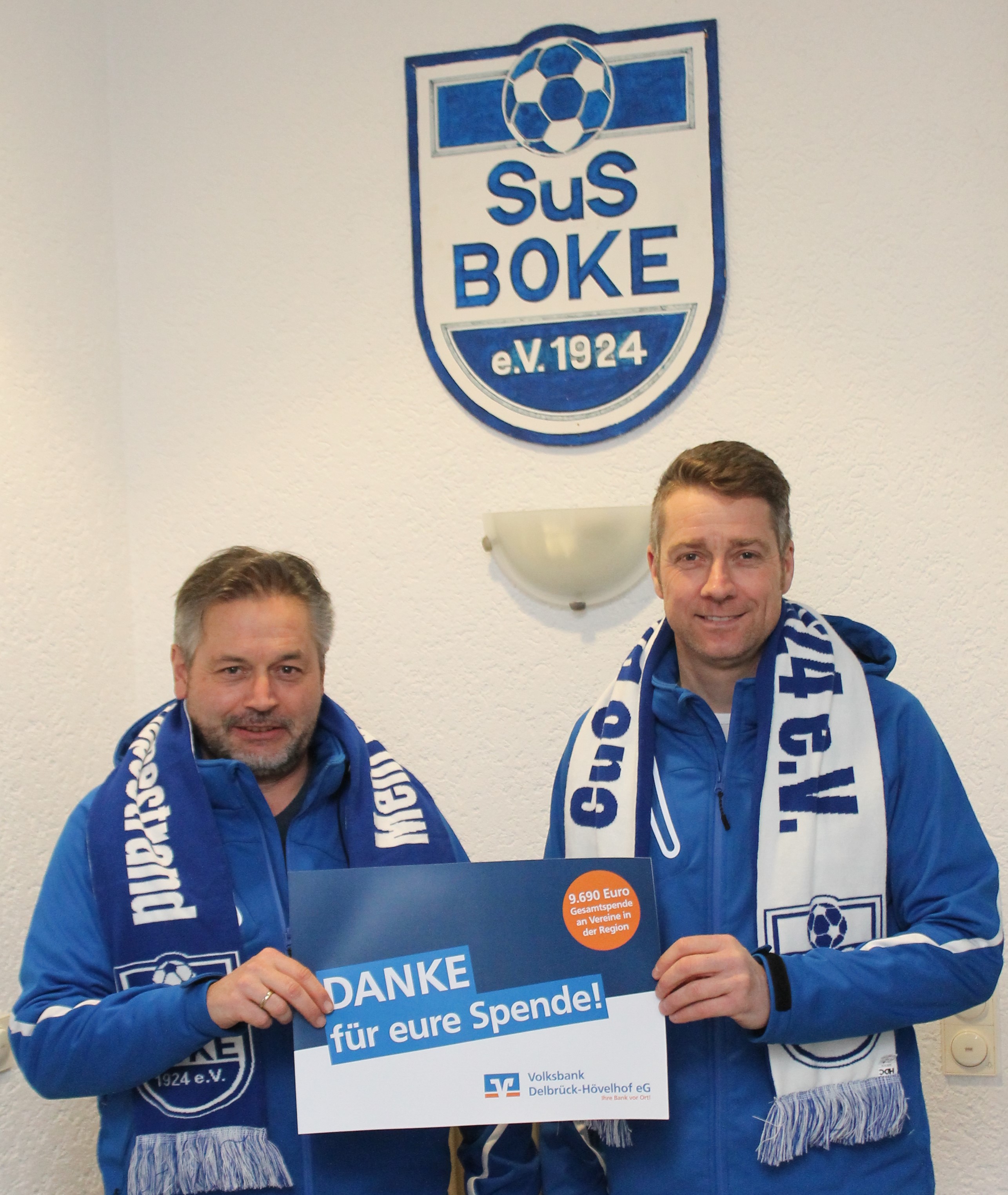 Der SuS BOKE 1924 e.V. bedankt sich in Person des Vorsitzenden des Gesamtvereins Martin Thewes sowie des Vorsitzenden der Abteilung Fußball Mike Jochem herzlich bei der Volksbank Delbrück-Hövelhof für die regelmäßige Unterstützung seiner Vereinsarbeit.